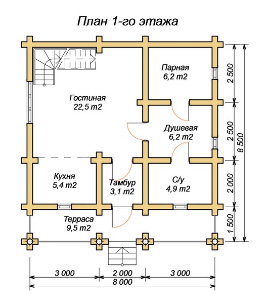эскизный проект деревянный дом 104.4м 1-й этаж