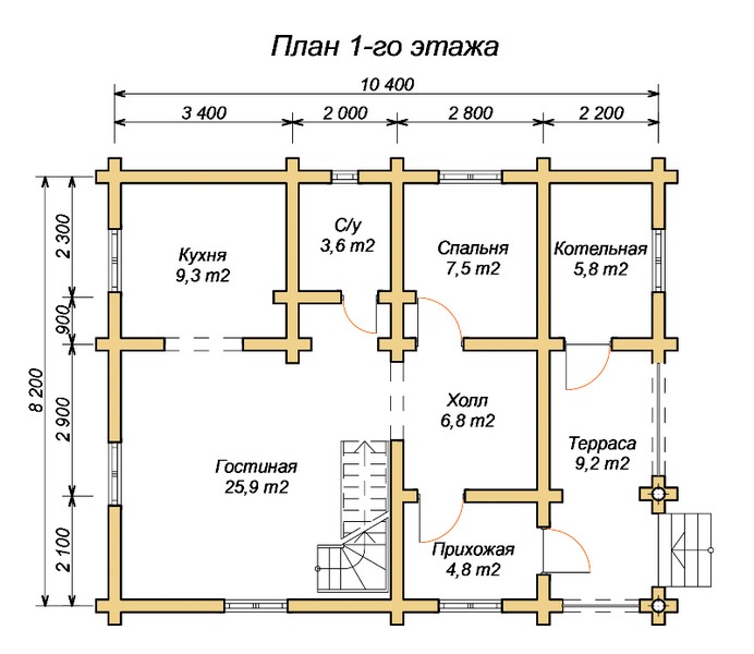 эскизный проект деревянный дом 117.4м 1-й этаж