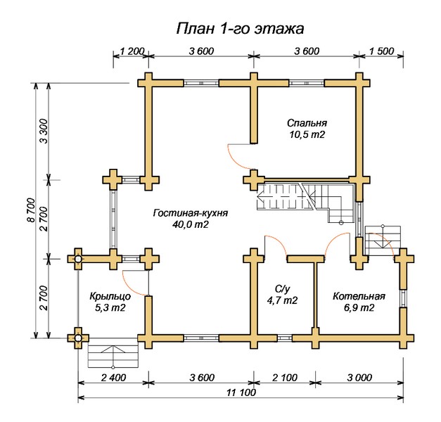 эскизный проект деревянный дом 121.5м 1-й этаж