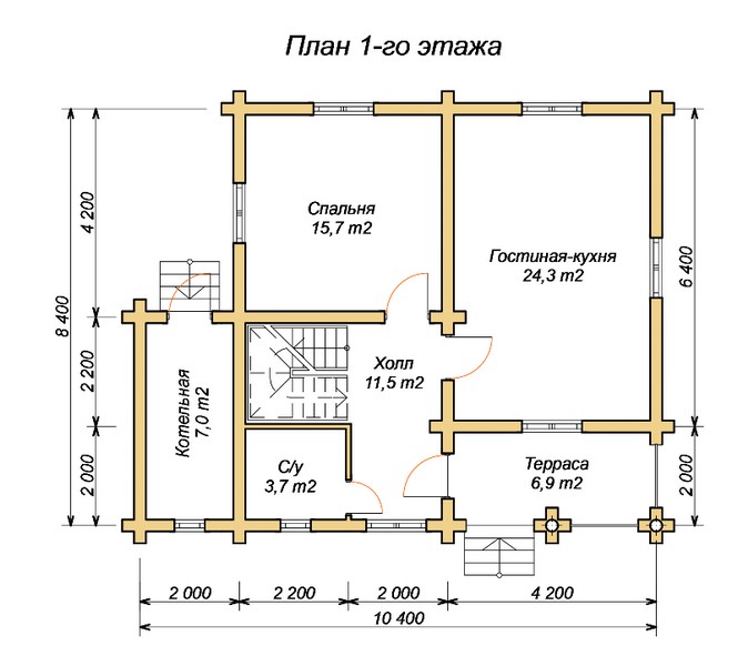 эскизный проект деревянный дом 127.7м 1-й этаж