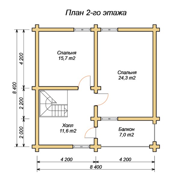 эскизный проект деревянный дом 127.7м 2-й этаж