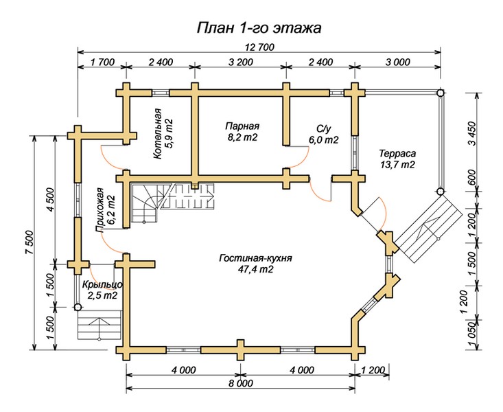 эскизный проект деревянный дом 151.7м 1-й этаж