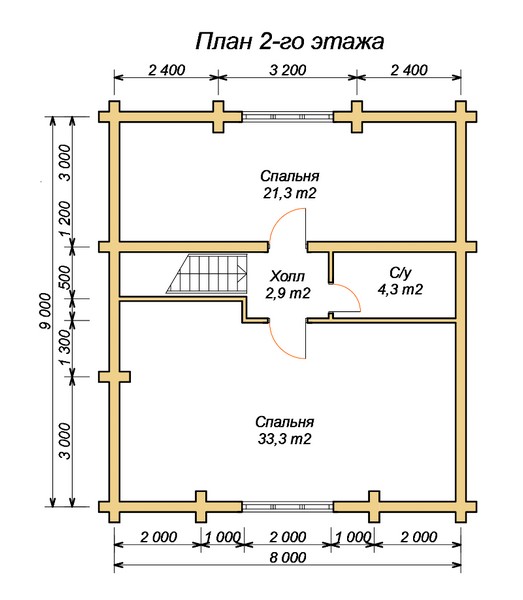эскизный проект деревянный дом 151.7м 2-й этаж