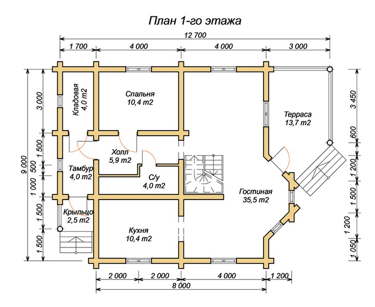 эскизный проект деревянный дом 152,8м 1-й этаж
