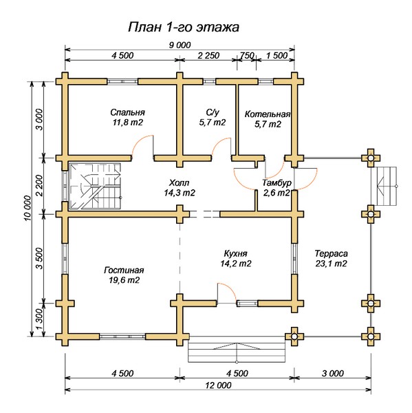 эскизный проект деревянный дом 171.1м 1-й этаж